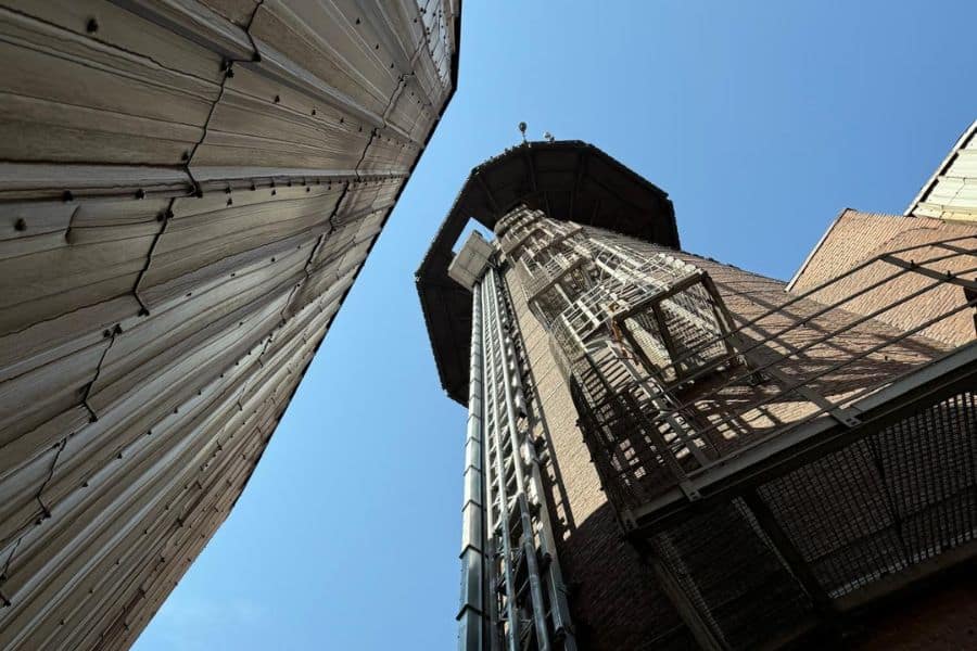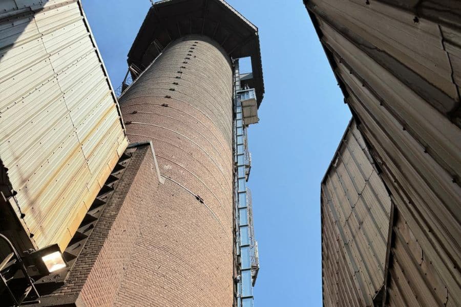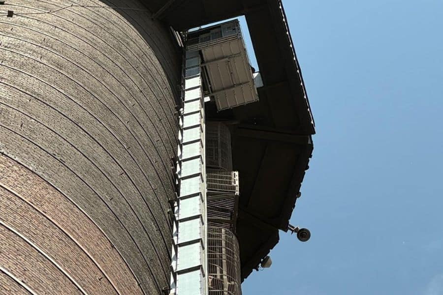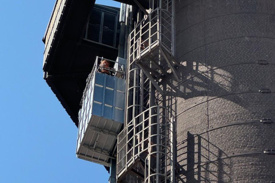 Na 25 jaar gebruik in een industriële omgeving was de bestaande inspectielift langs de schoorsteen aan vervanging toe. Daarbij speelde ook de wens om de installatie te moderniseren.